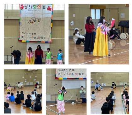 この一年間学んできた楽器、プク、チャンゴを使い、先生方と一緒に演奏してくれました。