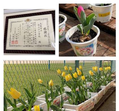 今朝、その取り組みで育ていますチューリップが見事に咲き誇ってくれました。まだまだこれから育つものもありますが、年度末を飾るにふさわしい取り組みでした。