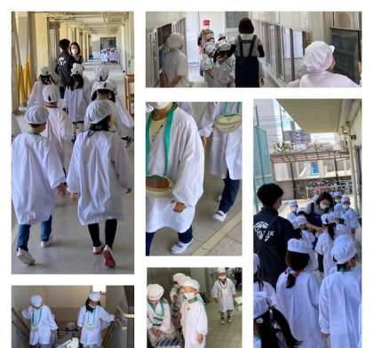 さて、1年生は入学して約1か月が過ぎました。この間、給食の準備や配膳は先生方で全て行なっていましたが、昨日から自分たちで準備を始めています。