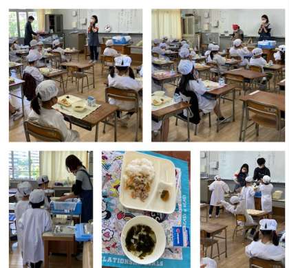 今日のメニューは豚丼。静かに食べることができていますし、ほとんどの児童は完食!
