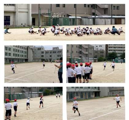 5年生が体育の授業で50m走の記録会を行なっていました。