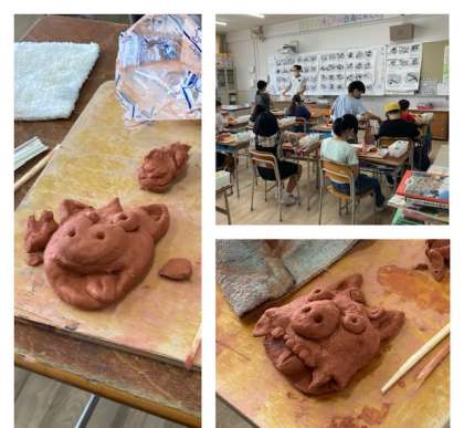 5年生は図工でシーサ作りを始めました。 個性あふれる作品ばかり!