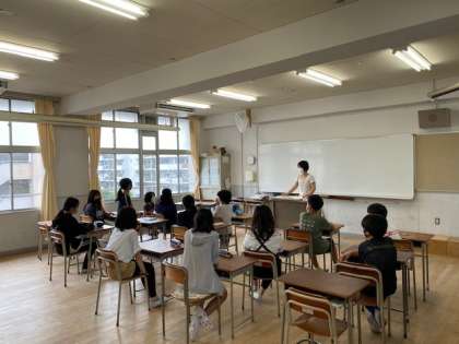 教科は、国語と英語、美術で3つのグループに分かれて授業を行いました。