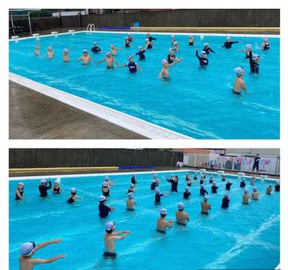 少し雨模様ですが、気温が高いのでプール学習は行えています。水温も問題ありません。
