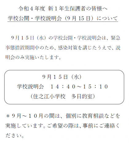 令和4年度 新1年生保護者の皆様へ