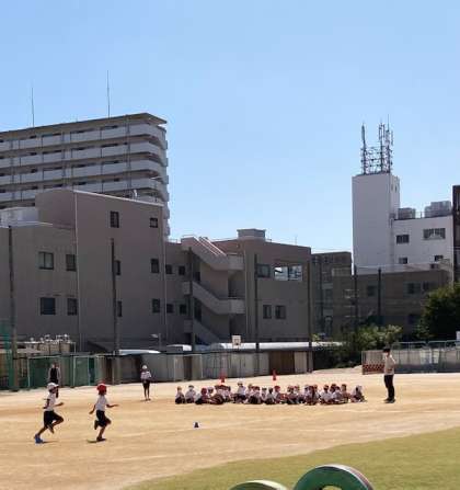 2年生が体育で「スミフェス2021」に向けて徒競走の練習中です。