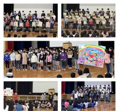 各学年がそれぞれ学んだ内容をまとめて発表している様子です。