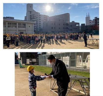 3年生の児童が描いたポスターが、大阪時計宝飾眼鏡商業協同組合様主催のコンクールで入選し、賞状が届きましたので表彰させてもらいました。