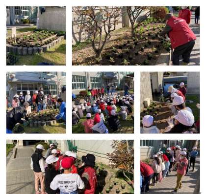 3年生が地域の皆様、区役所の担当の皆様と一緒に、種から育てていただいた7種類のお花の苗を植え替えてくれました。
