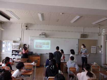 本年度もC-NET(英語を母語とするネイィティブの先生)と本校教員による英語の授業を行います。本日、C-NETの授業としては、第1回目でした。国や季節の名前を英語で発音しました。ゲーム形式で発表するなど楽しく学べたと思います。