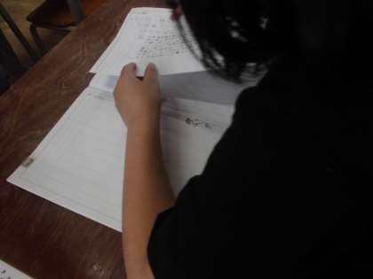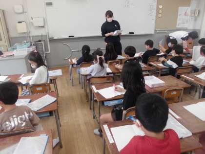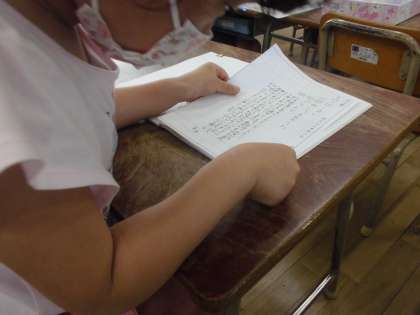 1年生は、まだ字を習っていないので今は学校で用意した連絡を書いた紙を連絡帳にはっています。のりを使って、ページにおさまるようにはっていました。のりをぬること、紙をはることをていねいにしようとがんばっていました。