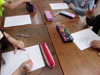 4月25日(月) 3年生は社会科で方位について学習しました。東西南北の4つの方位とその位置関係について、説明を聞いて学んだ後、画用紙に方位を書いた紙をもち5人一組になり位置関係を確かめました。