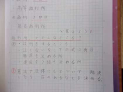 5月2日 社会で裁判所について学習しました。裁判所の役割について、資料を読んだり先生の話を聞いて学びました。。