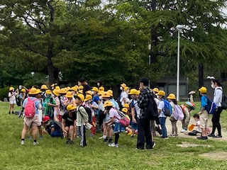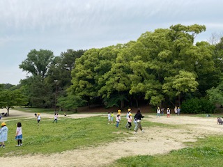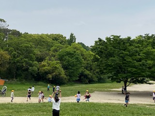 全グループ、オリエンテーリングを終え、広場で遊んでいます。