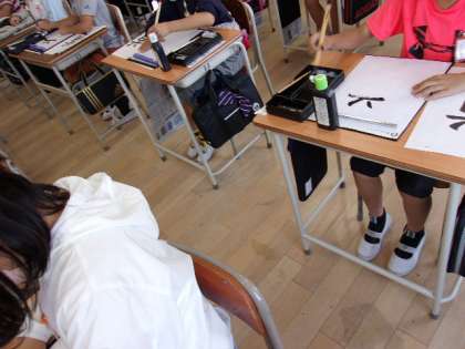 5月24日 毛筆の授業がありました。「道」という字を書きました。字のバランスをとるのに苦労していましたが、がんばって書くことができました。