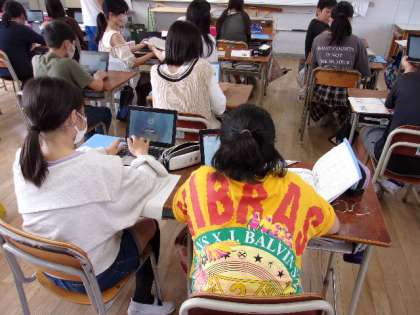 5月25日 総合的な学習の時間に「SDGs(持続可能な開発目標)」の各目標について学習しています。気候変動やエネルギーなど私たちの日常生活にどのようなかかわりがあり、今後どのように影響していくのかなど調べて、クラスメートに発信するためにプレゼンテーション資料を作成していきます。「調べる」「考える」「表現する」力は1年生からの学習の積み上げの成果です。