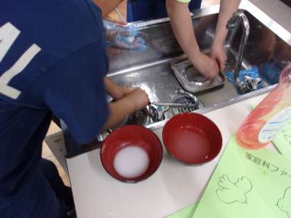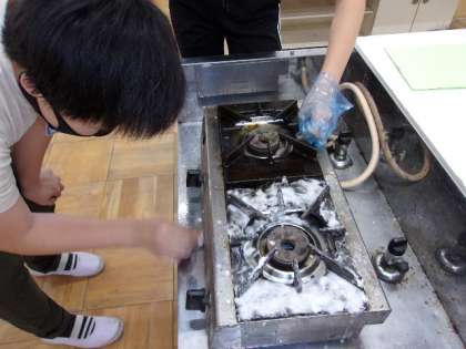 6月1日 家庭科でそうじの仕方について学びました。油よごれや水あかにはどのようなものをつけて磨けば汚れがおちるのか調べました。重曹やクエン酸など初めて知ったものがありました。家庭科室のコンロまわりや、シンクを実際に磨いてみました。汚れがどんどん落ちるので、こどもたちは楽しいという感じで磨くことができていました。