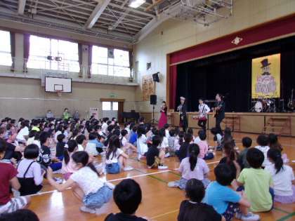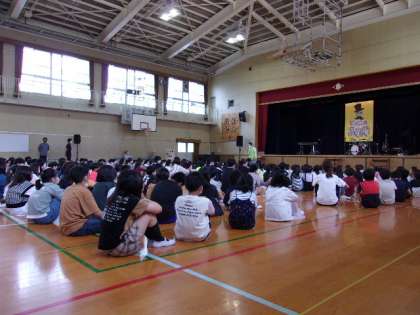 6月11日 地域活動協議会のはぐくみネットに協力していただき、体育館でサウンドポケットによる「ピアニカの魔術師」を見ました。すてきな音楽とお話、またみんなで歌い楽しい時間を過ごすことができました。こどもたちのすてきな笑顔をみることができました。朝早くからの準備を含め、様々にご協力いただきましたはぐくみネットのみなさま、本当にありがとうございました。