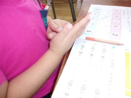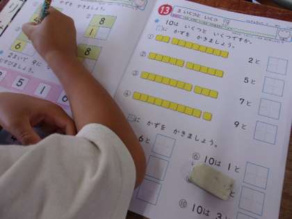 6月22日 算数で「いくつといくつ」という学習をしています。例えば8は3と5でできている、また2と6でできているという内容です。10は何と何でできているのかも学習しています。この内容を使って、たしざん、ひきざん、くりあがり、くりさがりのある計算へと発展させていきます。