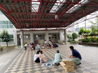 7月12日 5年生が焼き板をつくりました。板を焼いて林間学習にもっていき、現地で絵を描いたり色をつけます。明日は6年生が行います。