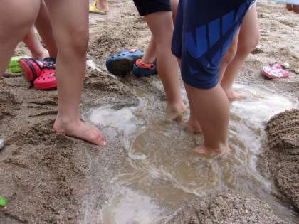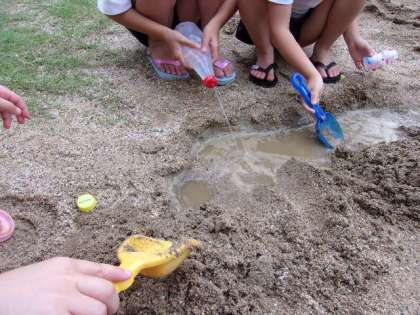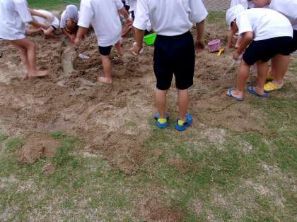 7月14日 生活科で、「水あそび・どろあそび」の学習をしました。先の学年の図工や理科で必要とされる力を高めるという目的があります。たのしく活動することができていました。