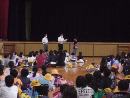 7月19日 5時間目終業式を行いました。1学期のふりかえりを聞いたり、生活面で気を付けることなどのお話を聞きました。5・6年生は林間学習があります。他学年も学習会があります。あと少し、がんばりましょう。