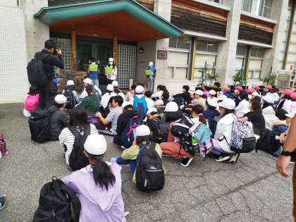 宿舎の前に全員集合して開舎式をしました。宿の方にみんなであいさつをしました。そして宿の方から宿の使い方を教えていただきました。