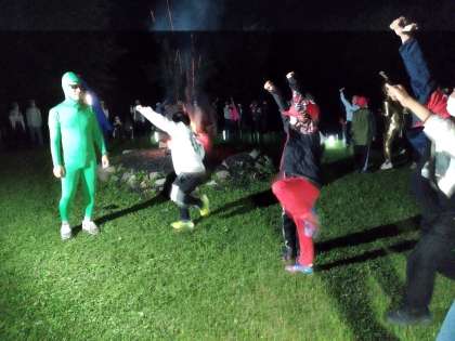 キャンプファイヤーで、火星人・水星人・木星人・金星人に宇宙のダンスを教えてもらい、大盛りあがりでした!