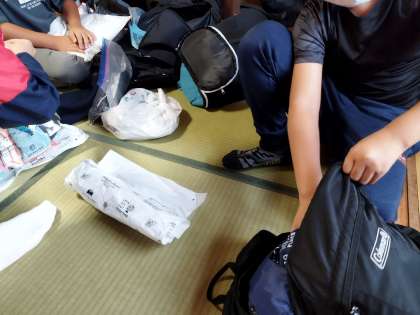 午前の活動の前に、自分の荷物をかたづけ、部屋を整理しました。