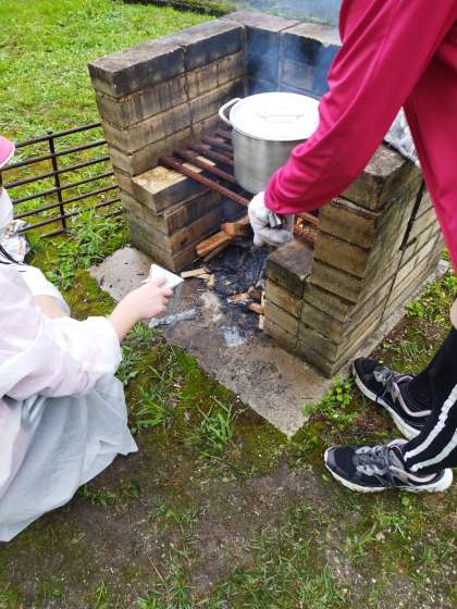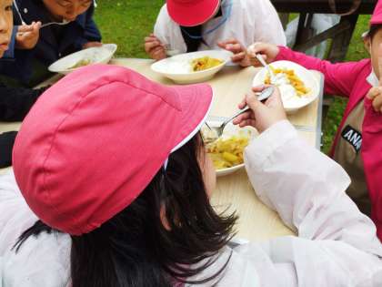 火をつけるタイミングで少し雨がふり、かなり苦戦しましたがなんとかできました。子どもたちはよく頑張りました。カレーライスはおいしかったです。