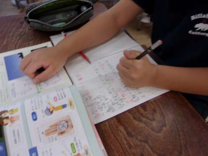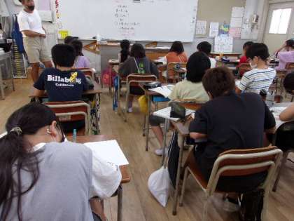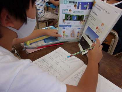 2学期2日目です。4年生は理科で月の動きについて学習しています。月の高さや方位をどのように確かめるとよいのか学習しました。
