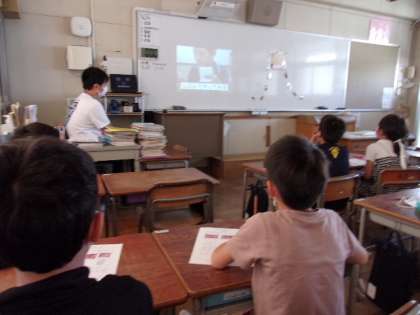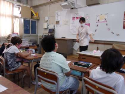 9月6日 2年生が学校歯科医の先生と歯科衛生士の方に歯みがき指導を受けました。奥歯に歯垢がたまりやすいので、よく磨いたほうがよいことを教えてもらいました。