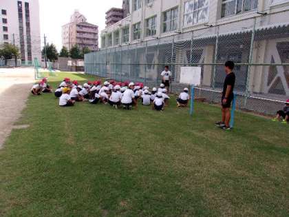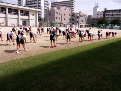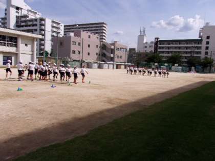 9月12日 体育で、ラジオ体操の動きの復習、行進の練習を行いました。