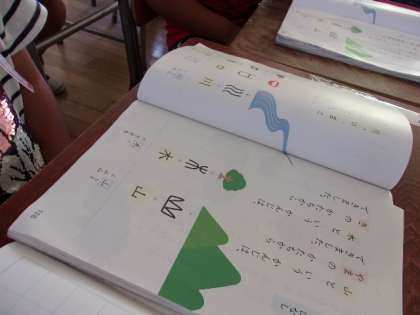 9月13日 国語で漢字の学習に入っています。今日は、漢字の成り立ち、例えば「山」や「木」などもともとの実物の形に似せてできたということを学びました。