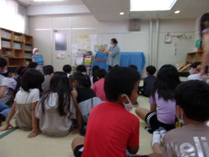 9月15日 「ぴよぴよ」さんによる読み聞かせがありました。1〜3年生は授業前の朝に時間に、また全学年対象に15分休憩にも読み聞かせをしていただきました。