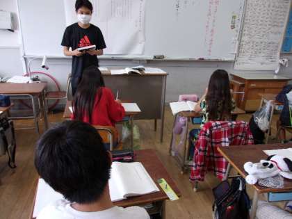 9月22日 国語で「夕日がせなかをおしてくる」という詩を学習しています。詩の中の様子、例えばどれくらいの時間帯か、背中をおしてのは何かなど考えながら学習しました。