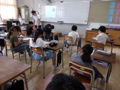 10月3日 明日(火)に車いす体験の学習があり、それに向けての事前の学習を行いました。車いすの押し方を含め、どのようなことに気をつければよいのか学習しました。