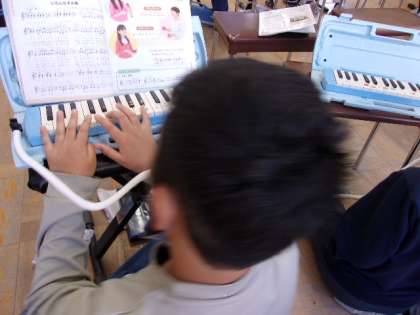 10月19日 音楽で「いろんな木の実」を鍵盤ハーモニカで演奏します。まずは、一人ひとりが指づかいを自分で練習して、その後みんなでピアノ伴奏に合わせて練習しました。