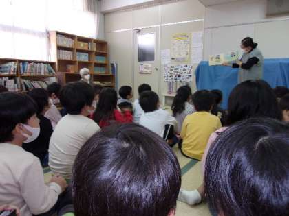 10月20日 今日は読み聞かせボランティア「ぴよぴよ」さんによる読み聞かせが図書室でありました。2冊読んでいただきました。ありがとうございました。