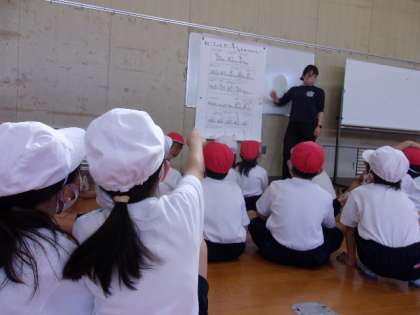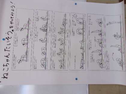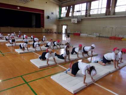 10月24日 マット運動の学習をします。手をついて背中をまっすぐにしたり丸めたりしました。これから様々な動きについて練習していきます。