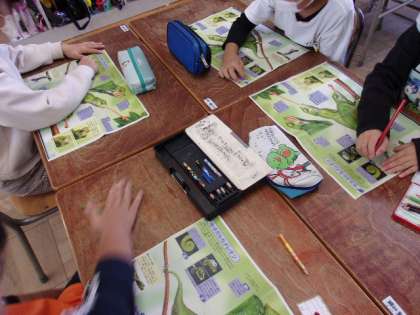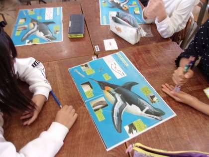 10月25日 国語で、図鑑の文章から、生物の特徴と能力を分けてさがす学習をしました。同級生と話し合いながら、書かれている部分をさがしました。