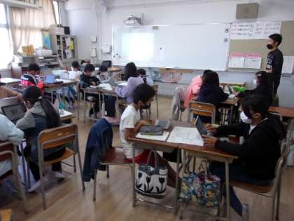 11月2日 国語「和の文化を受けつぐ」の学習の発展として、「調べる」「報告する」ことを目的としてパンフレットづくりに取り組みます。題材として、和紙や花火を選び資料調べなど行いました。