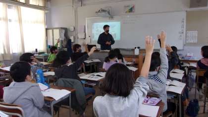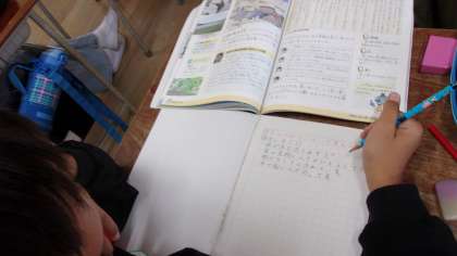 11月22日 社会で大和川の歴史について学習しています。江戸時代、洪水が多かったときの大和川の様子を教科書で見ながら、図からどんなことがわかるのか発表しました。