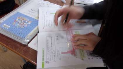 11月28日 資料(データ)の特徴を読み取る学習をしています。これまでは、平均値を学びましたが、6年生では最頻値と中央値についても学習します。仕入れ・販売を例に考えました。