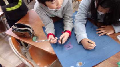 12月5日 生活科で1年生を招いて2年生が作ったおもちゃでいっしょに遊ぶという学習をします。1年生に見せる遊び方を示したものや、記念になるものを作りました。年下の子にやさしく教えてあげてほしいと思います。