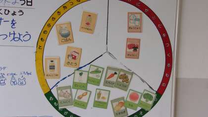 保健委員会児童が、掲示板に明日の給食の予告をしてくれています。明日はカレーライスと黄桃です。好きな人が多いと思います。楽しみですね。