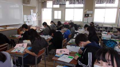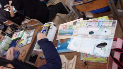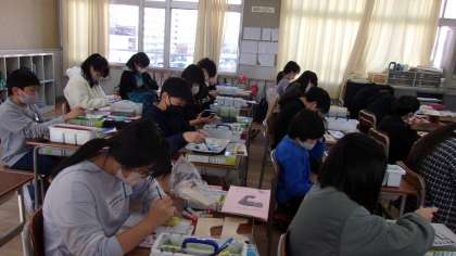 12月9日 図工でテープカッターを作っています。着色してから組み立てます。