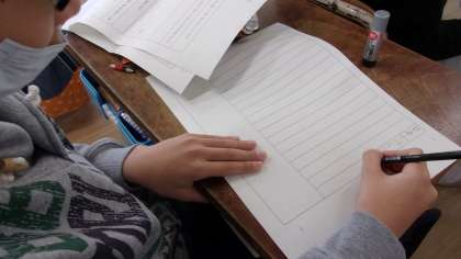 12月12日 国語「くらしの中の和と洋」の学習も、説明文読み取りがほぼ終わり、意見文を書くという学習になっていきます。今日は、どのように進めていくか書いたプリントを見ながら、どのような内容を書くのか考えました。