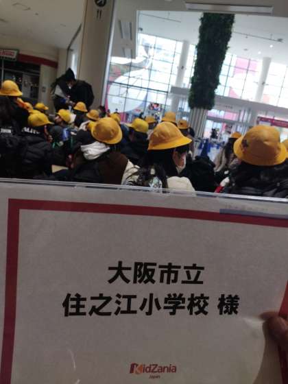 1月20日 キッザニア甲子園に到着しました。これから説明を受け、活動に入ります。