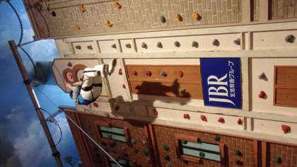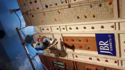高所作業(ビル窓清掃等)の一部を体験しました。